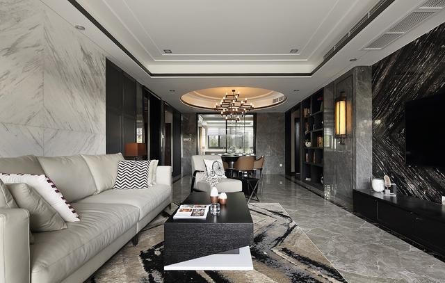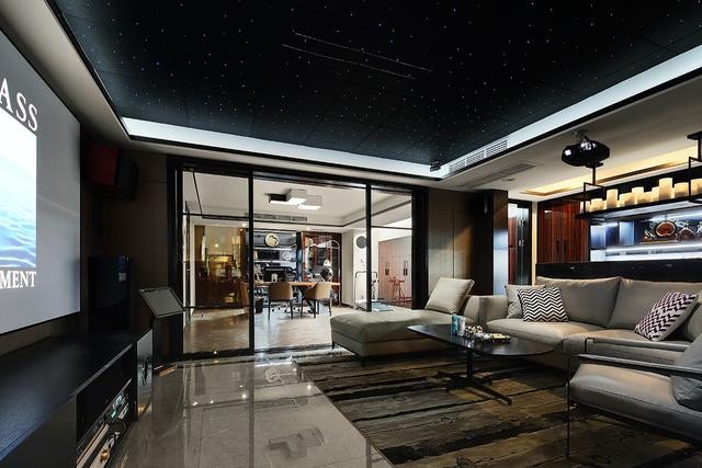 冰冷的金屬、耀眼的玻璃、墻上的深色石材舞動著年輕的氣息,給人強烈的視覺沖擊。每一處都透著時尚、前衛(wèi)的味道。摒棄了一味炫耀復雜空間的低端表現形式,用技術為生活服務才是創(chuàng)意的本質。客餐廳直線的形式,完全符合人的生活動線。后現代主張采用裝飾手法來達到視覺上的豐富,提倡滿足心理需求而不僅僅是單調的功能主義中心。