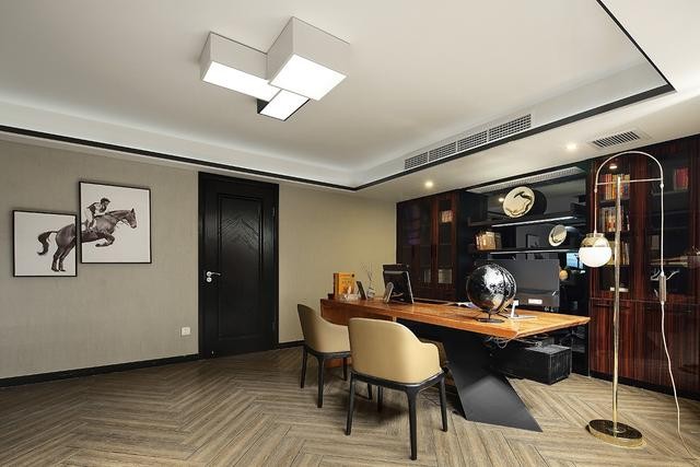 黑白灰加上木質寫字桌的搭配,更具輕奢感。