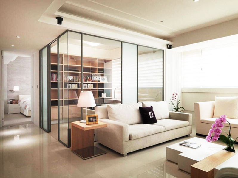 ▲玻璃門(mén)是比較常見(jiàn)的隔斷方式,優(yōu)點(diǎn)在于玻璃的透明不會(huì)影響被分割的兩個(gè)空間都能有很好的采光,尤其以細(xì)窄邊的框架更顯秀美。