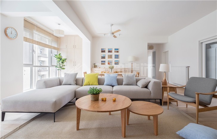 家居色調(diào)通常是白色、米色、淺木色等偏向淺色系,融入少許鮮艷的純色作為點綴;局部墻面采用木質(zhì)進行調(diào)和,居室空間處處體現(xiàn)簡潔實用、靜逸舒適。