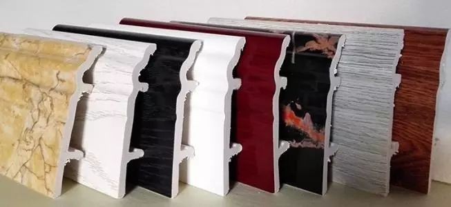 這是一種木質(zhì)踢腳線的便宜替代品,顏色多變,有仿木紋的,有仿大理石的,有仿金屬拉絲的。缺點是容易變形甚至開裂,時間久了,貼皮會脫落,視覺效果也不太好。