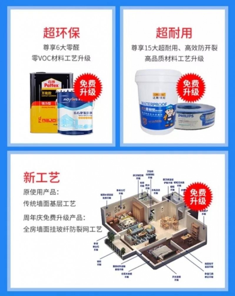 材料工藝升級(jí)不加價(jià)全房32大項(xiàng)目全包不限量,全場(chǎng)任性不加價(jià)