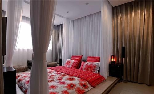 婚房裝修雖然主要講究的是喜慶的氣氛,但是如果喜慶過度,效果就不是很好了??梢圆捎弥袊?guó)紅的元素來體現(xiàn)整體上的浪漫幸福氣氛。而墻面和地面是居室內(nèi)面積比較大的區(qū)域,所以它們的色彩應(yīng)該選用與家具色調(diào)相近的。