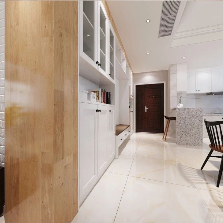 ▲ 處于玄關(guān)附近的走廊,十分適合用于做鞋柜,選擇緊貼墻壁的款式,根據(jù)過道的長度量身定制,增加收納空間。