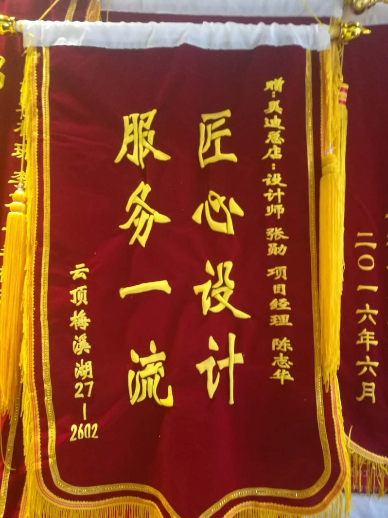 這是曹先生前幾天送過來的錦旗。“我很慶幸自己裝修選擇了美迪,裝修結果我們一家人都很滿意,我也愿意向別人推薦美迪,這幾天還經常有鄰居來家里參觀呢。”曹先生說道。