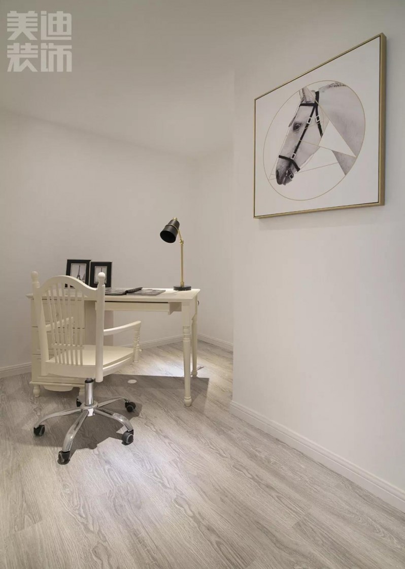 實(shí)木地板自然的木質(zhì)紋凸顯書房淳樸的氣質(zhì),以雅致的臺(tái)燈,營造溫馨舒適的閱讀學(xué)習(xí)區(qū)。