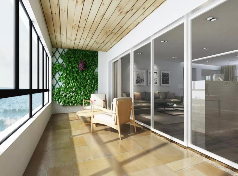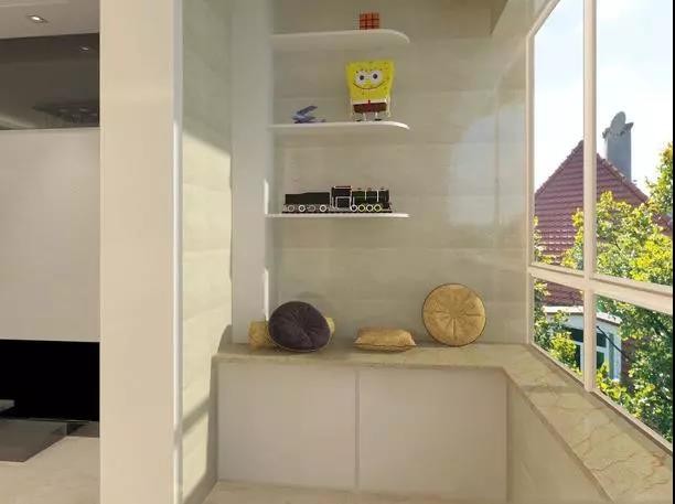 如果是緊靠廚房的生活陽臺(tái),還可利用陽臺(tái)的一角建筑一個(gè)儲(chǔ)物柜,存放一些蔬菜食品或不經(jīng)常使用的物品。供休息、餐飲使用的陽臺(tái),也可以擺放少量的折疊家具