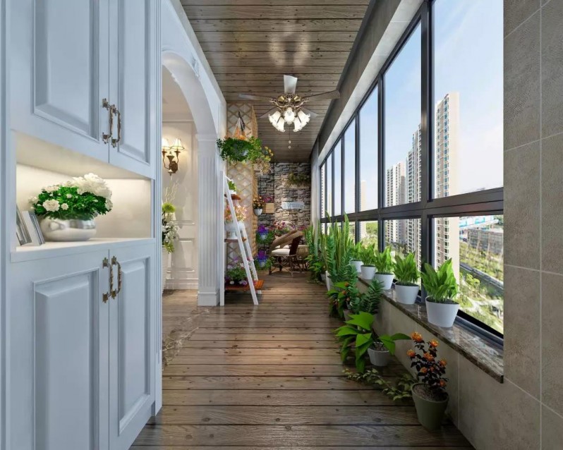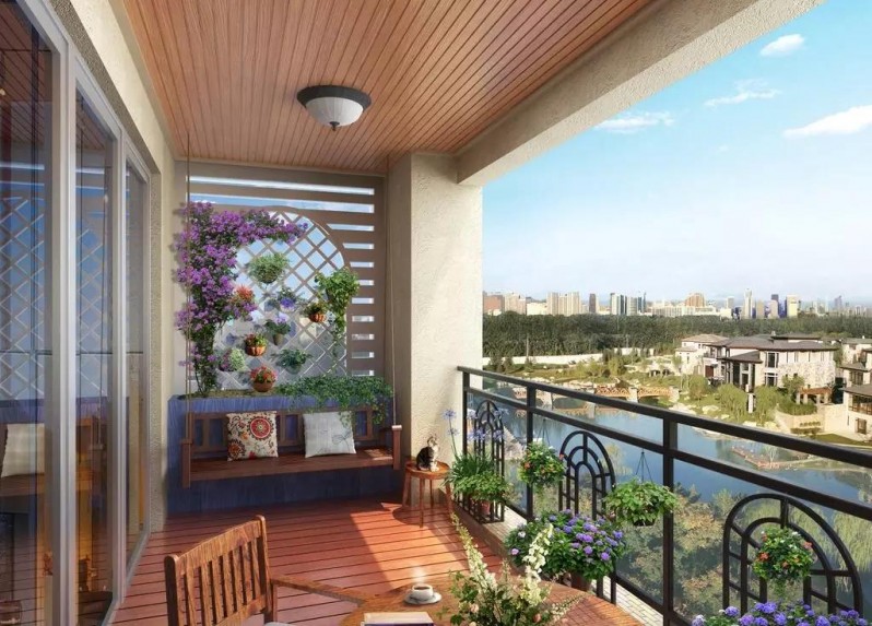 可以在陽臺(tái)側(cè)墻面、地面做一些裝飾美化,比如在側(cè)墻上裝置一些富有韻味的裝飾品;或做一些水景裝飾也是十分清新宜人的;在陽臺(tái)種植花草,營造園林小空間,為家居增添自然景致。