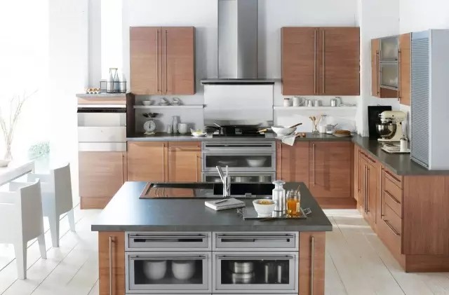 購買一體化廚柜能省去很多麻煩,根據(jù)實際情況定制櫥柜也是合理利用空間的好辦法。