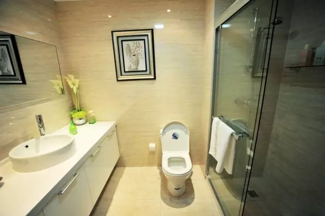 最簡單的方法就是用鋼化玻璃將干濕兩區(qū)分開,雖然清潔起來有點麻煩,但洗澡的時候就不會弄得到處是水,好處顯而易見。