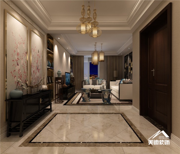 新中式風(fēng)格擅長(zhǎng)用中正穩(wěn)定的對(duì)稱手法,空間設(shè)計(jì)線條簡(jiǎn)潔流暢,通透大氣,本案以現(xiàn)代的手法結(jié)合中式元素中的舒適典雅為主,為客戶打造出便捷舒適的生活方式。在家裝設(shè)計(jì)中,一貫追求照搬古代設(shè)計(jì)往往效果不盡如人意,更要注重加入現(xiàn)代元素?,F(xiàn)代技術(shù)中有很多新型材料,就可以善加利用進(jìn)去。另外設(shè)計(jì)師在設(shè)計(jì)中也可以把主人的個(gè)人喜好、品味等也加入進(jìn)去。既滿足現(xiàn)代人居住的要求,迎合中式家具的設(shè)計(jì)風(fēng)格。新中式風(fēng)格的現(xiàn)代演繹。將現(xiàn)代和古典元素結(jié)合在一起,以現(xiàn)代人的審美打造古典韻味的事物,讓改良后的中式風(fēng)格體現(xiàn)出優(yōu)美與典雅。