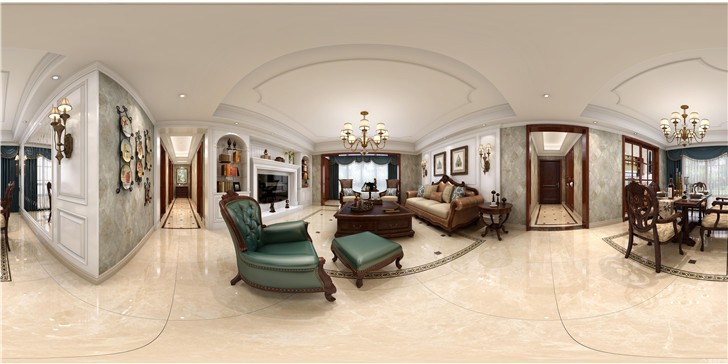 首先是全景圖,非常大的空間,形成的效果也是充滿了美式風(fēng)格的感覺,整體的格局做的很棒!