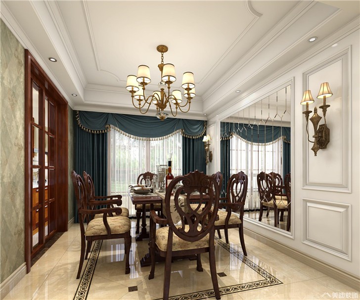 餐桌選擇了實(shí)木座椅,餐廳的燈光既不能太強(qiáng)又不能太弱,本案餐廳燈光則以溫馨和暖的黃色為基調(diào),頂部做了簡(jiǎn)單的吊頂。整體的效果顯而易見,很清晰很美觀。
