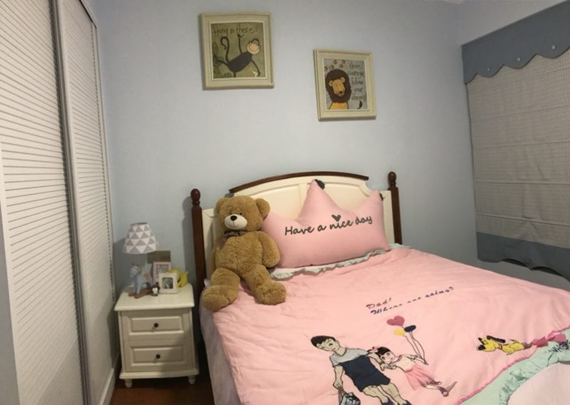 楊姐的女兒喜歡玩滑板,性格比較男孩子。在墻面顏色選擇上,設(shè)計(jì)師楊麗娟選用了男女生都能接受的淡淡藍(lán)灰色,配上白色百葉衣柜,瞬間清爽。