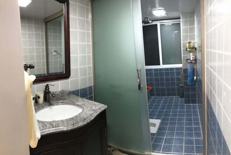 原始衛(wèi)生間有突出的墻體導(dǎo)致空間變得狹窄,同時(shí)設(shè)計(jì)師通過(guò)后期隔出一個(gè)衣帽間,將整個(gè)墻進(jìn)行拉平,戶型更加方正。