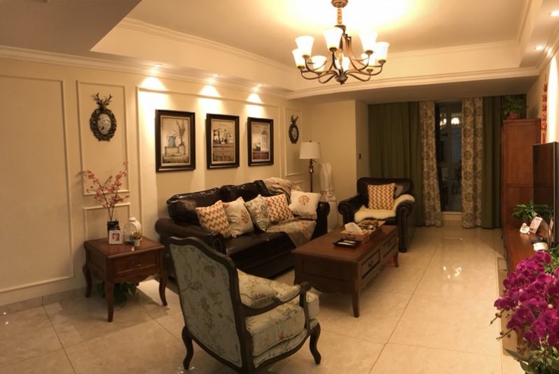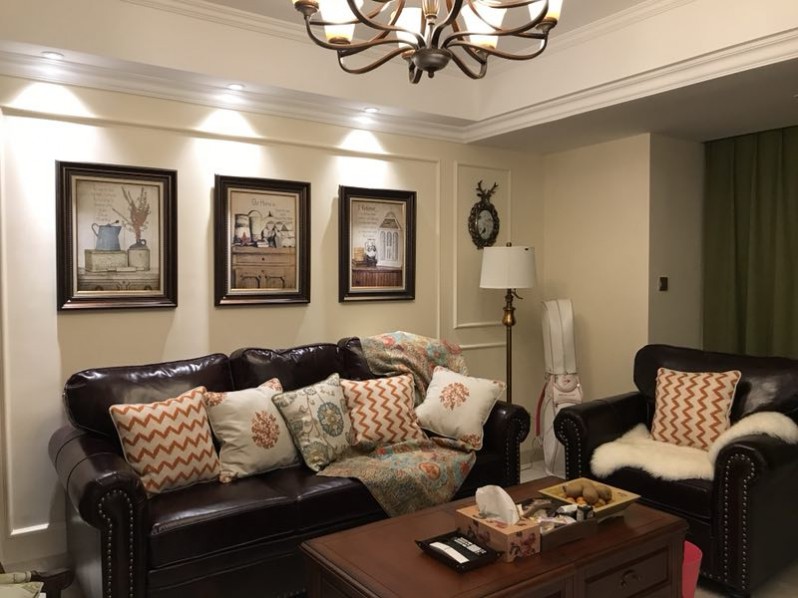 業(yè)主楊姐是第一次裝修,自己也不知道喜歡什么裝修風(fēng)格。設(shè)計(jì)師劉麗娟在與楊姐的溝通過(guò)程中,發(fā)現(xiàn)楊姐喜歡深色家具,同時(shí)考慮到她的年齡與活波開(kāi)朗的性格,最終設(shè)計(jì)成小美風(fēng)??蛷d處皮質(zhì)的沙發(fā)配上花飾棉麻布藝單人椅,沉穩(wěn)中帶著隨性自然,在燈光的照射下,溫馨的客廳讓人一眼就被吸引。