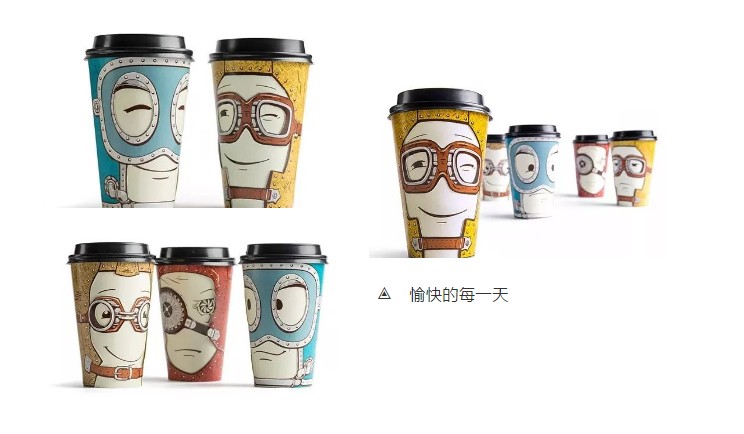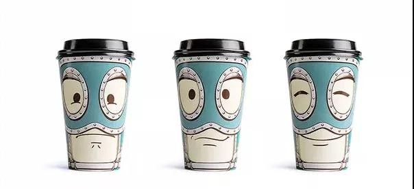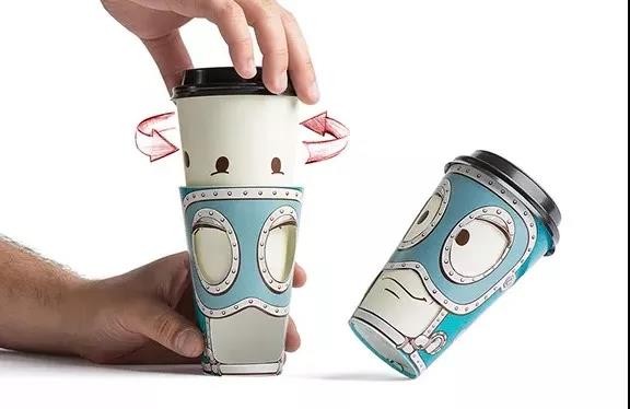 該杯子的制作結(jié)合了插畫師、平面設(shè)計師、美術(shù)指導(dǎo)的創(chuàng)意,里外兩層設(shè)計,外面一層被畫成眼眶和嘴型的輪廓,而里層是在白色背景上手繪上了不同的面部表情。里外兩層的結(jié)合,只需單手把里層扭一扭,杯子就會自己換表情。