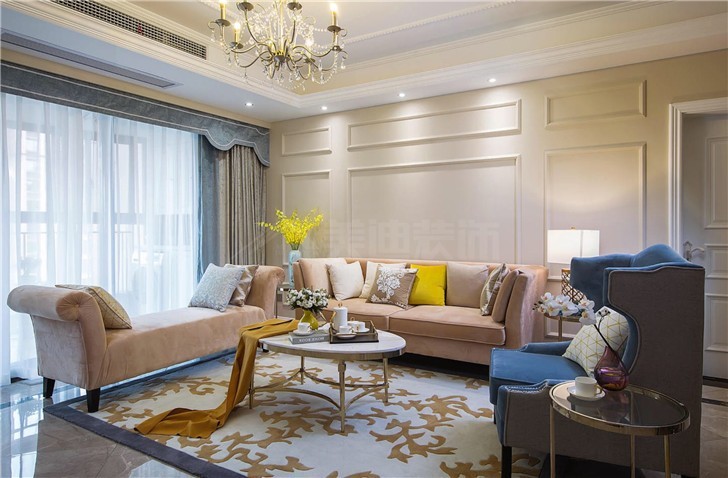 敞亮舒適的客廳空間在視覺上給人帶來溫馨的感覺,暖暖的氛圍告別冰冷的觸感,蠟燭吊燈照亮室內(nèi)空間,搭配舒適軟裝提升居住舒適度。