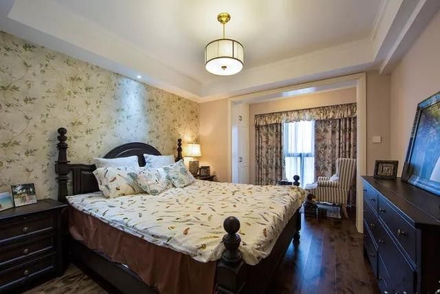 美式風(fēng)格慣用成套的布藝軟裝來(lái)裝飾,例如碎花墻紙、窗簾、被單的碎花設(shè)計(jì),帶有田園的清新淡雅感。
