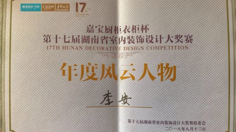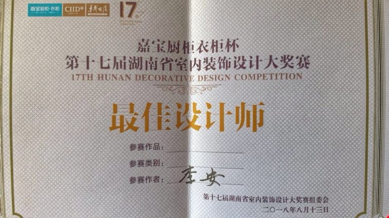 1、2018年獲湖南省第十七屆室內(nèi)裝飾設(shè)計大賽“十大金牌設(shè)計師邀請賽”金獎(湖南年度最佳設(shè)計師);