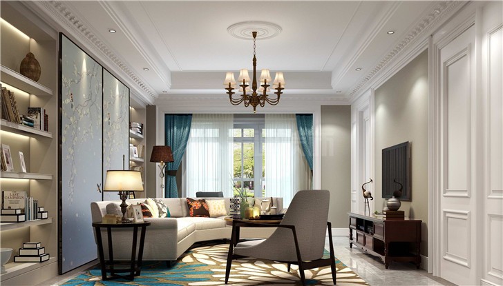 客廳無論是色彩還是造型等元素,都力求簡潔、連續(xù)。簡歐風(fēng)格講究以圓、方造型和對稱性為特點(diǎn):沙發(fā)背景墻兩幅對稱擺放的裝飾畫、搭配對應(yīng)的筒燈,營造出輕柔浪漫的藝術(shù)氛圍。