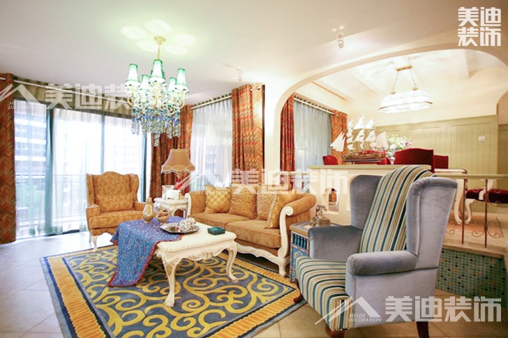 2、在室內(nèi),希臘地中海風格一般會用窗簾、桌巾、沙發(fā)套、燈罩等均以低彩度色調(diào)和棉織品為主。素雅的小細花條紋格子圖案是主要風格。要在防水防潮方面做技術(shù)處理。