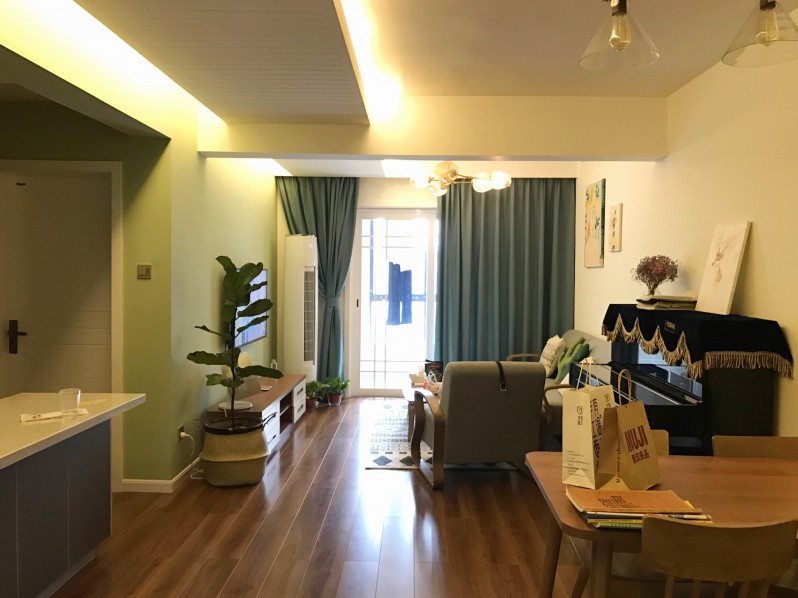 屋主是位有品位的鋼琴老師,陳姿設(shè)計(jì)師說屋主很喜歡綠色,又很符合樓盤的名字,所以整個(gè)空間以綠灰色為基調(diào)。在搭配上,淺色調(diào)的沙發(fā)、裝飾、吊燈等,再擺放上生機(jī)勃勃的綠植,看起來簡約大方,還有溫馨的感覺。軟裝都是屋主小姐姐精心挑選布置的,小編已經(jīng)默默種了裝飾畫的草。