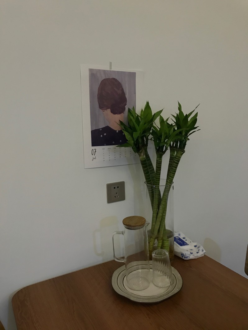廚房對(duì)面就是小餐桌,北歐風(fēng)特點(diǎn)就是去除復(fù)雜的裝飾,簡單大方,墻上莫蘭迪色系的日歷畫,增加了裝飾元素。為使空間能夠多些活力,小屋內(nèi)擺放了不少綠植。