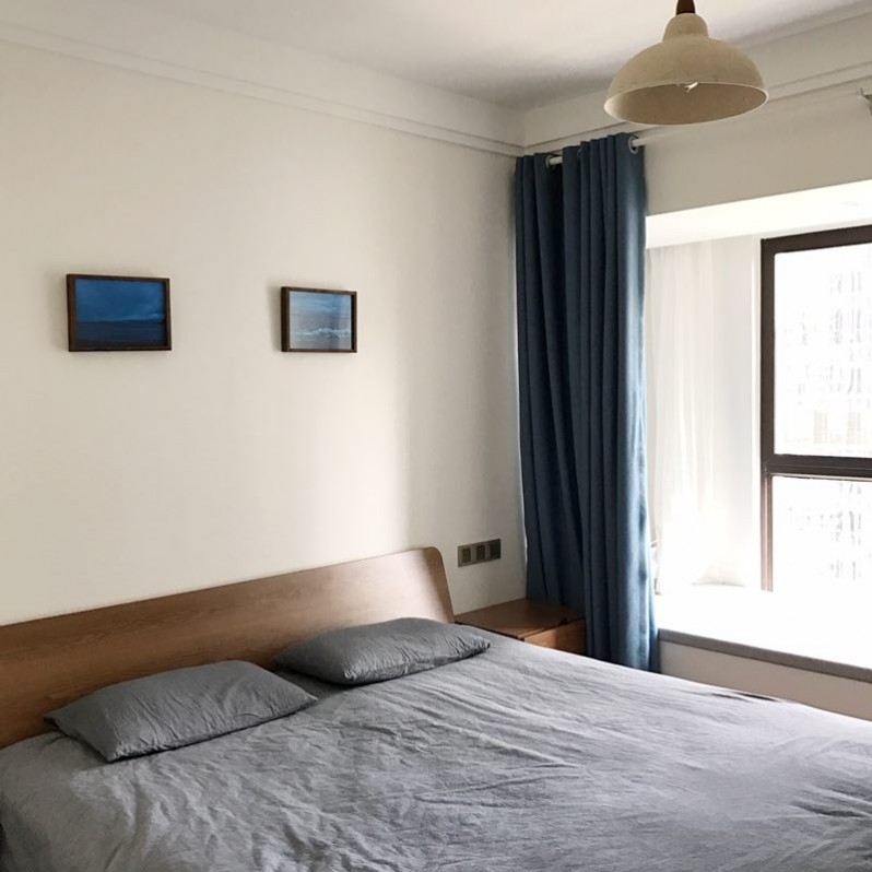 臥室設(shè)計(jì)也比較簡約,一張舒適的單人床搭配垂下來的吊燈,顯得更有設(shè)計(jì)感。水泥灰色布藝床上四件套,棉麻的材質(zhì)舒適又親膚。除了客廳中、餐廳里看見的掛畫,臥室自然也少不了,床的背景墻也掛了兩幅裝飾畫。屋主很喜歡這種簡單搭配,真是永不過時(shí)。