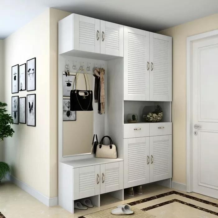 玄關(guān)是進出房屋必經(jīng)的地方,為了方便,這里通常設(shè)置一些儲物用的家具,如鞋柜、壁柜、風雨柜、更衣柜等。