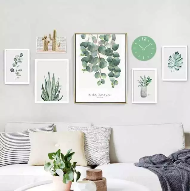 在家里掛上幾幅綠植裝飾元素的掛畫,和家里的盆栽相呼應,整個房間都充滿著綠意。在裝飾畫的附近,最好放上一盆盆栽,墻上的掛畫好像也有了生命一樣。