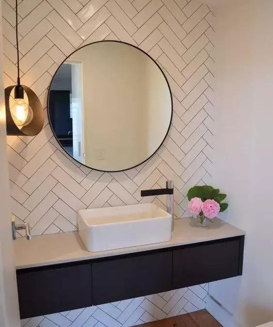死板的整面方形鏡子已經(jīng)out啦,只需要很少花費(fèi)換上一個(gè)小圓鏡,整個(gè)空間好像馬上活起來(lái)!