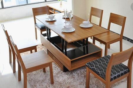 3、坐面可用木板、木條、膠合板、刨花板,漆布、帆布、皮余和編藤等。折疊凳子多為凳面折合,或?yàn)椴济鎸?duì)折,覆面可用各種人造板及其他代用品。一物多用家具,也是折疊家具的一種,主要特點(diǎn)是增加一些部件,能夠抽出推進(jìn),翻轉(zhuǎn)折疊,使一件家具能代替幾件家具使用。