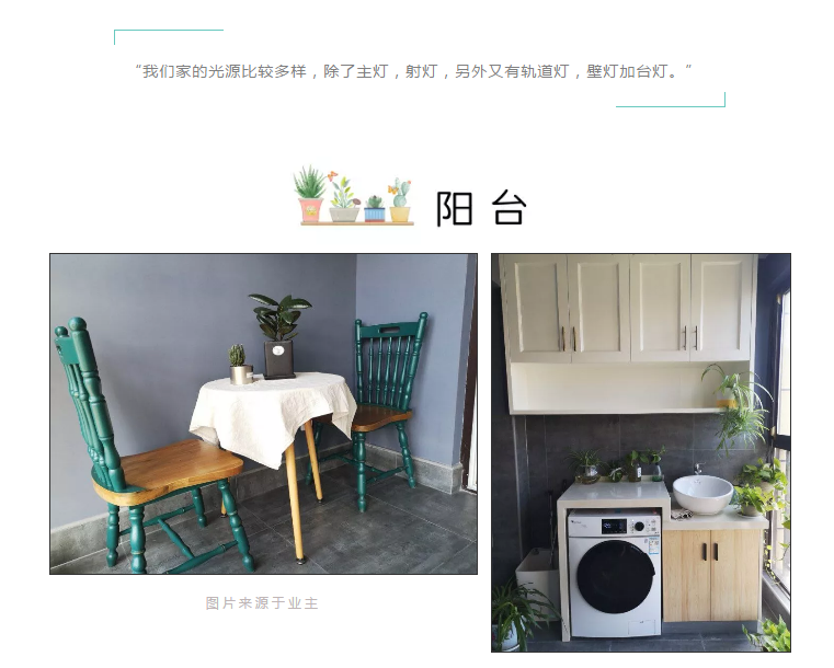 陽臺邊上擺放了質感復古桌椅,成為了業(yè)主娟娟的居心地。周末在家,沏上一杯咖啡,遙望窗外的風景,想想也足夠愜意。