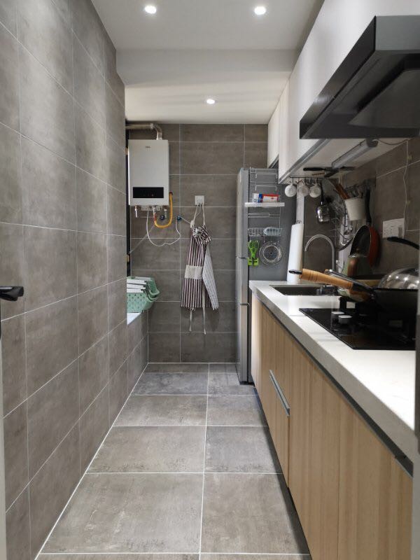 封閉式廚房,簡單白色調,十分喜歡料理的業(yè)主娟娟會經(jīng)常性在家做飯。設計上,選用硅鈣板吊頂加射燈,整個空間干凈清爽。