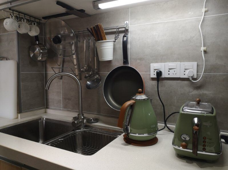 輔助燈光的加入,提亮了操作臺面的亮度。貼心的設計,讓屋主下廚更加得心用手。
