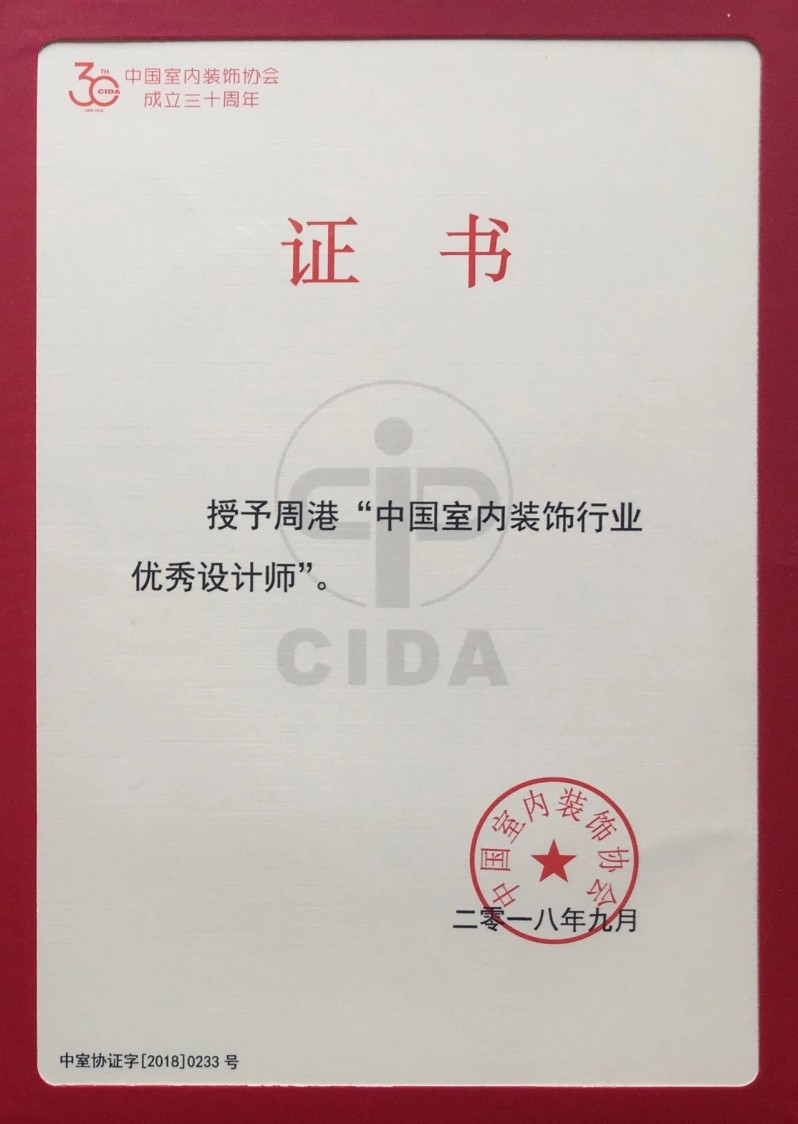 △ 美迪裝飾總店設(shè)計(jì)總監(jiān) 周港獲得“中國室內(nèi)裝飾行業(yè)優(yōu)秀設(shè)計(jì)師”獎