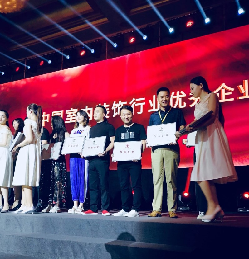 △ “中國室內(nèi)裝飾行業(yè)優(yōu)秀企業(yè)”獎 周港作為代表上臺領(lǐng)獎(右三)