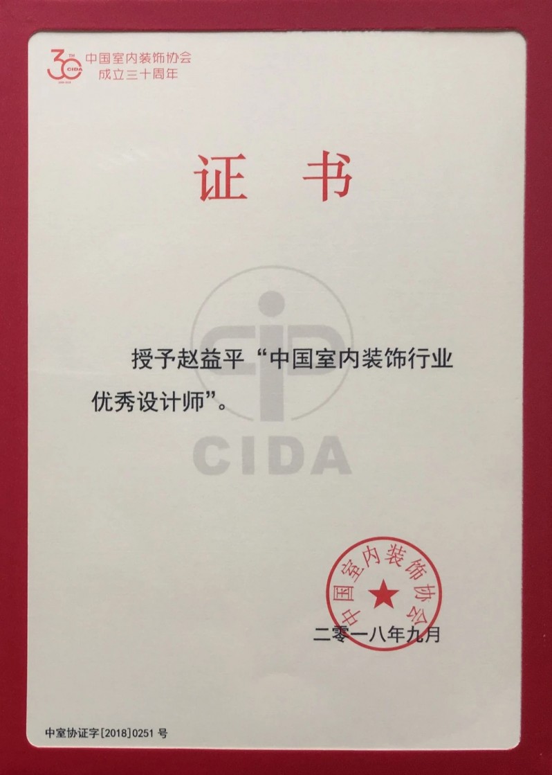 △ 美迪大宅設(shè)計(jì)院院長 趙益平獲得“中國室內(nèi)裝飾行業(yè)優(yōu)秀設(shè)計(jì)師”獎
