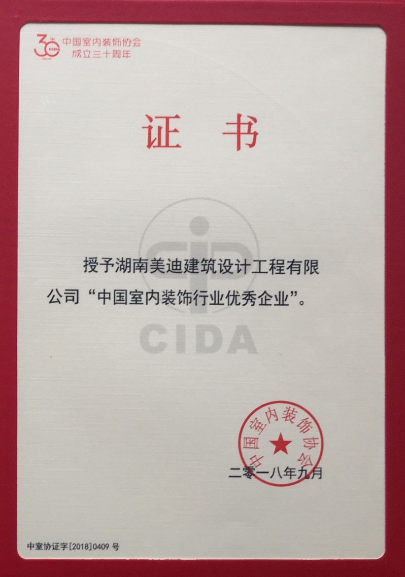 △ 美迪裝飾獲得“中國室內(nèi)裝飾行業(yè)優(yōu)秀企業(yè)”獎