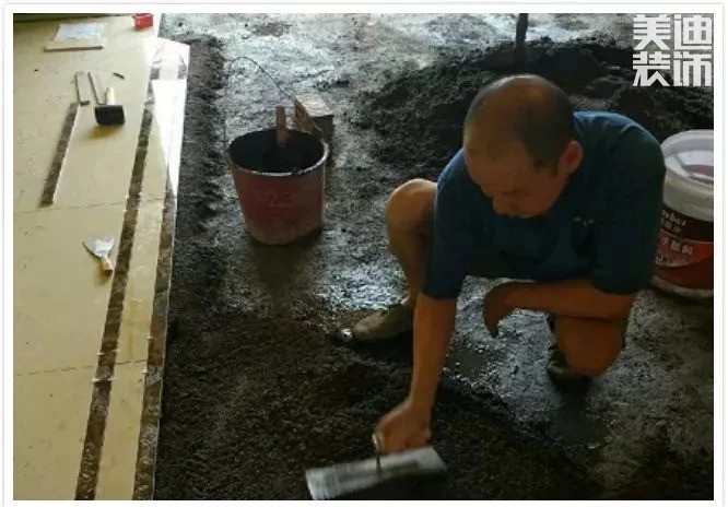 泥工師傅向地面有蹲便器或地漏的部位做一定坡度,方便“跑水”。(防止水在地面積蓄,沒有預(yù)留的話就是導(dǎo)致地磚褪色的原因之一)