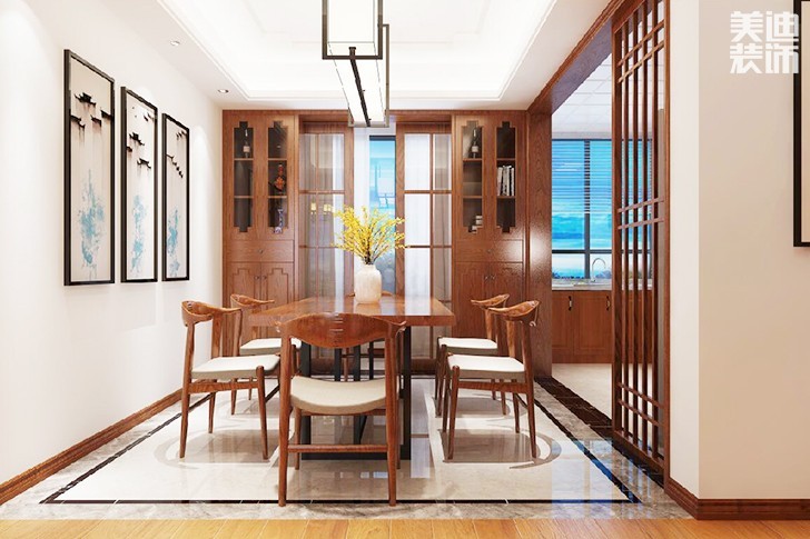 新中式餐廳風(fēng)格講究對稱、簡約、樸素、格調(diào)雅致、文化內(nèi)涵豐富,同時也體現(xiàn)主人的較高美情趣與社會地位。