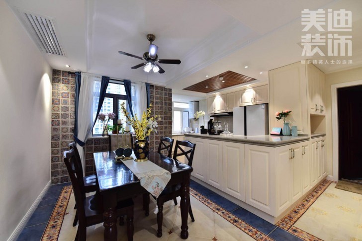 美式田園風(fēng)格有務(wù)實、規(guī)范、成熟的特點,餐廳設(shè)計很大氣,在大空間里更有感覺