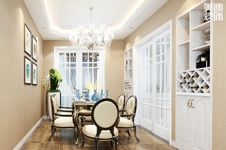 簡歐風(fēng)客餐廳柔和了現(xiàn)代簡約的設(shè)計,也保留了歐洲古典的貴氣,是現(xiàn)代裝修市場上的新貴!