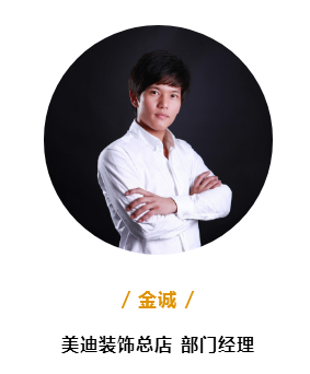其實剛開始他得知我們要采訪他時,他是拒絕的,原因是擔心面對正式采訪不善于表達。旁邊同事卻說:“他不會說,卻能干,是實干型!”帶著好奇我們對他進行一次“不正經(jīng)”的采訪,本期《美迪人物》我們邀請到美迪裝飾總店設計部經(jīng)理—金誠。