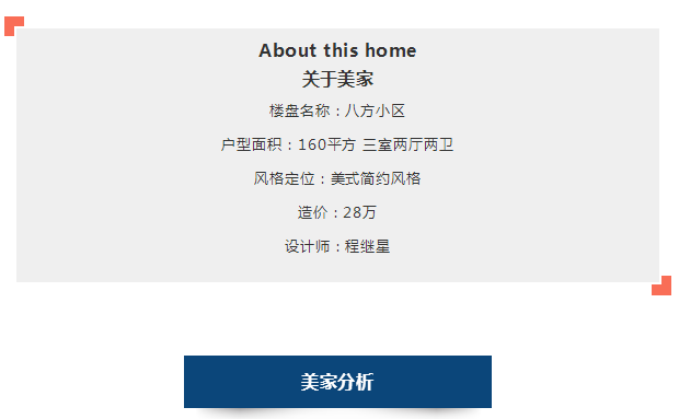 本期《美家記》的案例作品是業(yè)主彭先生的父母為他準(zhǔn)備的婚房,現(xiàn)在是彭先生和愛人一起居住。設(shè)計師程繼星為他們打造了一套美式簡約風(fēng)格的三居室溫馨愛巢,整體給人一種簡約大氣的氣息,沒有繁復(fù)的空間布局,卻很抓眼。