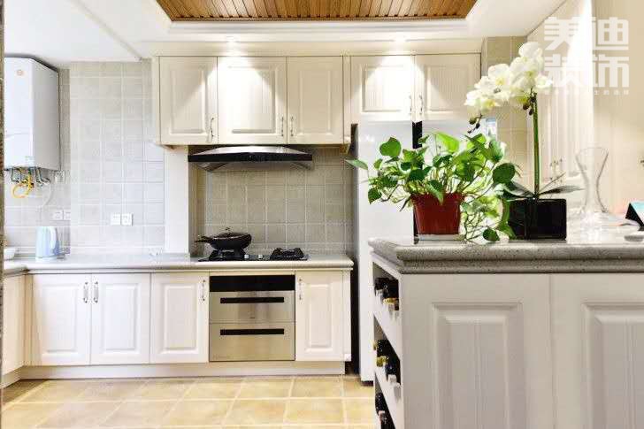 廚房的設(shè)計比較特別,原本狹長窄小的空間,轉(zhuǎn)變成一個由收納柜組合造型的開放式廚房,避免了廚房擁擠的問題又提供了大量的儲物空間。