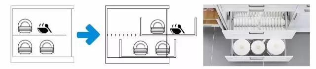 活動式抽屜柜:相比傳統(tǒng)的隔板式柜體,抽屜式空間的拿取時一目了然,更加便利。