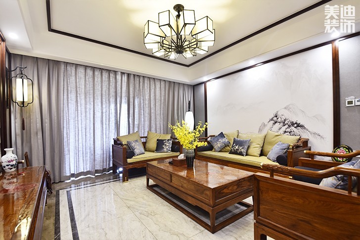中國(guó)傳統(tǒng)居室非常講究空間的層次感,這種傳統(tǒng)的審美觀念在“新中式”裝飾風(fēng)格中,又得到了全新的闡釋。依據(jù)住宅使用人數(shù)和私密程度的不同,需要做出分隔的功能性空間,則采用“埡口”或簡(jiǎn)約化的“博古架” 來(lái)區(qū)分;在需要隔絕視線的地方,則使用中式的屏風(fēng)或窗欞,通過(guò)這種新的分隔方式,單元式住宅就展現(xiàn)出中式家居的層次之美。