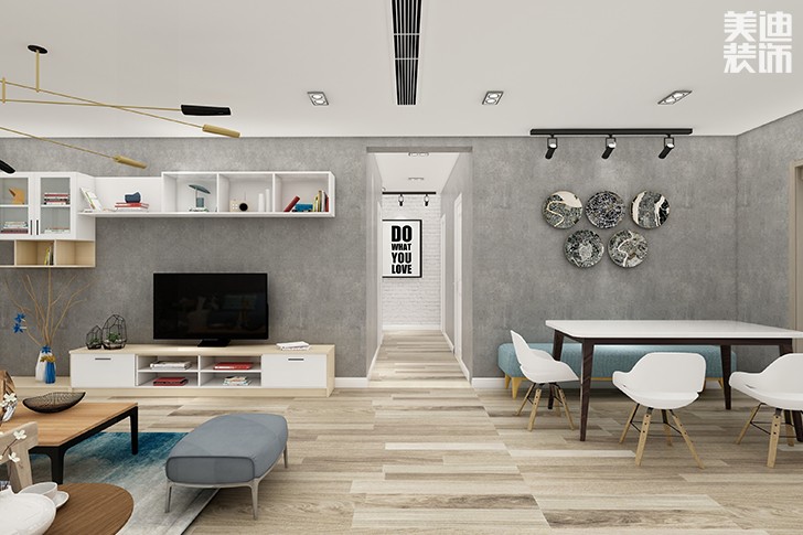 把沙發(fā)背景墻作為書(shū)架來(lái)設(shè)計(jì),幾塊隔板加上掛桿滿足收納需求,隔板上可以擺放自己??吹臅?shū)籍,掛桿還可以用來(lái)打造照片墻,非常實(shí)用。